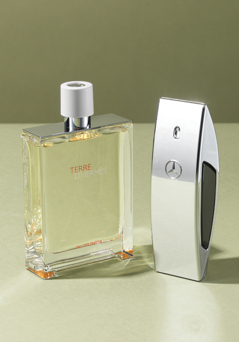 (왼쪽부터) 떼르 데르메스 오 트레 프레쉬 125ml 15만6천원 에르메스. 문의 080-990-8989. 클럽 오데 토일렛 50ml 7만5천원 메르세데스-벤츠.