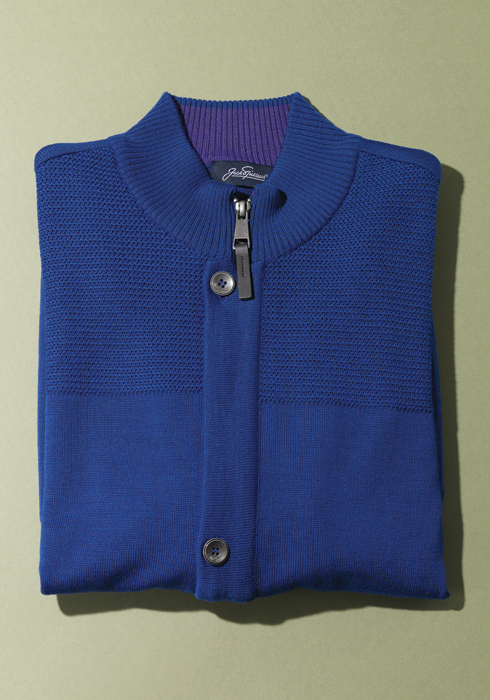 환절기에 활용도가 높은 지퍼 풀오버 카디건. 조직감이 돋보이는 울 소재를 탄탄하게 엮어 쉽게 늘어나지 않는다. 29만8천원 잭 니클라우스.