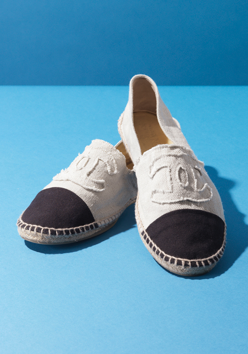 내추럴하게 커팅한 로고와 두꺼운 스티치 장식, 세련된 컬러 조합으로 완성한 슬립온 스타일의 에스파드리유 슈즈 60만원대 샤넬.