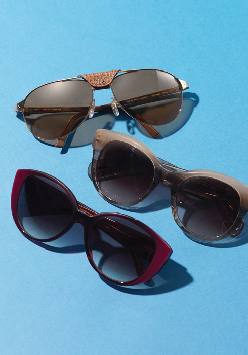 맨 위의 에이비에이터 스타일 선글라스 1백30만원대, 맨 아래 자줏빛 프레임 선글라스 50만원대 모두 까르띠에.