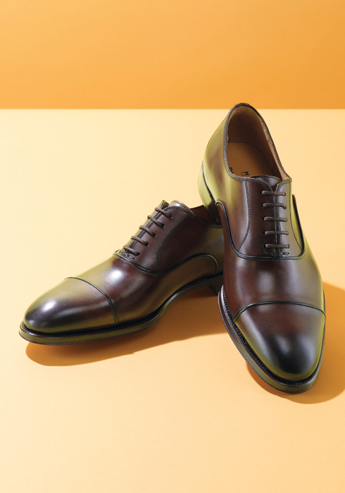 진한 브라운 컬러 스트레이트 팁 슈즈는 신사들의 필수품. 착용감을 극대화한 볼로냐 공법을 적용해 발의 피로를 줄였다. 59만원 맥나니 by 분더샵.