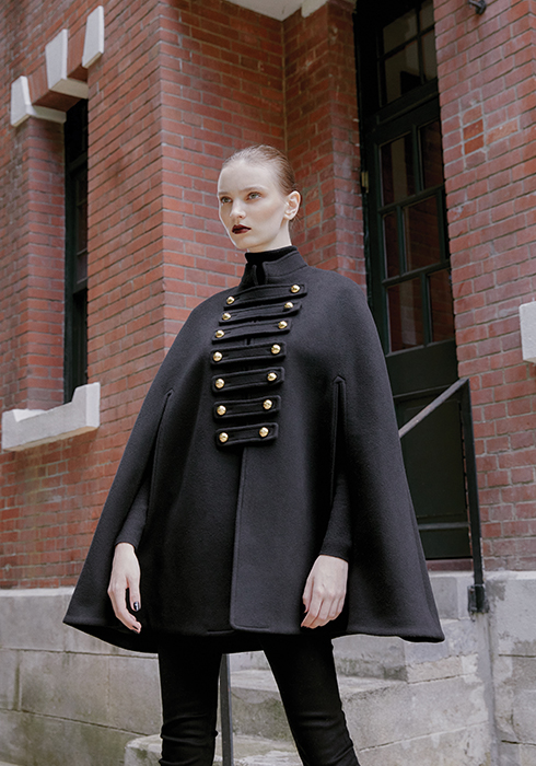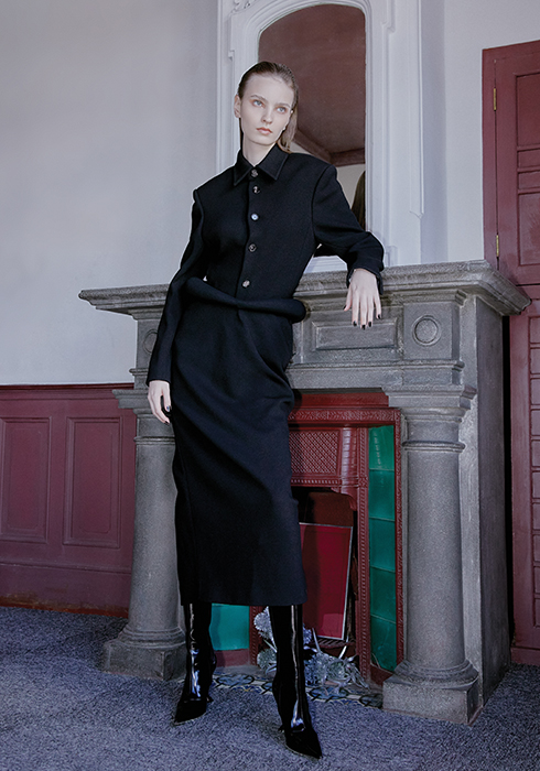 울 & 캐시미어 소재의 블랙 컬러 오피서 케이프 5백50만원, 블랙 컬러의 스키니 진 모두 가격 미정 셀린느 바이 에디슬리먼. 레더 소재의 롱부츠 가격 미정 보테가 베네타.