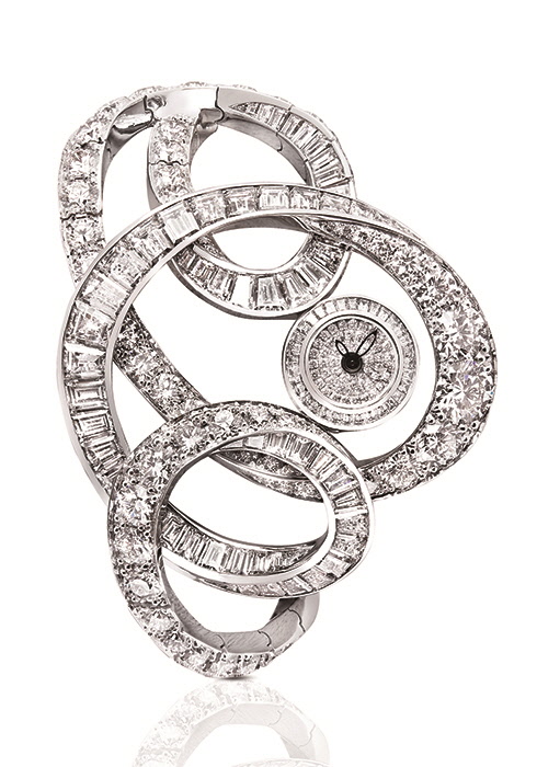 런던 메이페어 아틀리에와 스위스 시계 공방의 협업으로 상상 속에나 존재할 법한 경이로운 하이 주얼리 워치를 만드는 그라프. 하우스가 보유한 독보적인 품질과 양의 희귀한 원석을 차치하더라도 이들이 실현하는 놀라운 상상력의 세계를 마주할 때면 한계가 어디일지 늘 궁금증을 품게 된다. 올해 출시한 유니크 피스 중 가장 눈길을 끈 것은 ‘톰블리의 영감을 받아’ 컬렉션. 현란한 곡선으로 이뤄진 시크릿 워치, 오벌 워치, 브레이슬릿 워치에서 역동적인 에너지까지 느껴진다. 현대미술에 남다른 애정을 지닌 로렌스 그라프 회장의 의지가 담긴 것으로, 미국의 추상주의 화가 사이 톰블리의 유니크한 낙서 드로잉, 캘리그래피에서 영감을 얻었다. 굽이진 라인에 맞춰 다양한 모양과 크기로 세공한 다이아몬드를 인비저블 세팅한 하우스의 노하우를 엿볼 수 있는 역작.