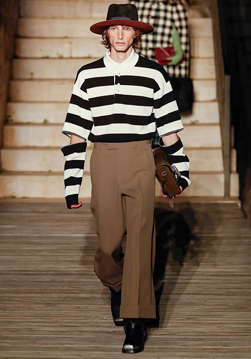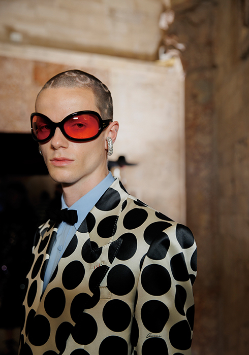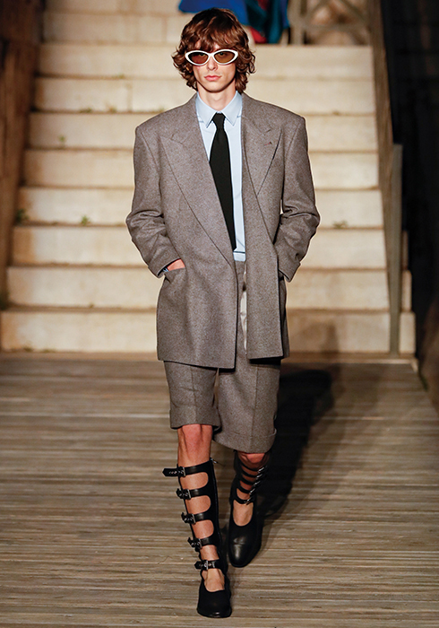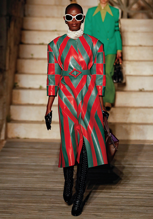 독특한 기하학적 디자인으로 유명한 카스텔 델 몬테는 창의적인 천재였던 프리드리히 2세가 1240년경에 건축을 의뢰한 걸작이다. 외딴 곳에 홀로 서 있는 것처럼 보이는 이 성은 해발 540m인 이탈리아 남동부의 풀리아 지역에 자리한다. 하루 종일 햇빛이 쏟아지는 수평의 언덕, 건축적인 완벽함과 북유럽, 이슬람 문화, 고대 등 다양한 요소가 조화를 이루는 카스텔 델 몬테는 여러 민족, 문화, 문명 및 종교가 교차하는 지중해를 완벽하게 표현한다. 이 절대적 존재감의 건축물이 구찌의 알레산드로 미켈레가 2023 크루즈 컬렉션 무대로 선택한 곳이다. 미켈레는 이곳에서 과거와 현재를 오가며 탐구한 아이디어를 반영한 1백1가지 룩의 방대한 컬렉션을 선보였다. 패션계의 철학자로 불려도 손색없는 미켈레를 사로잡은 건 독일의 문학평론가이자 철학가 발터 베냐민(Walter Benjamin)과 그의 별자리 사유였다. 이 천재 사상가에게 역사는 현재와 연결되지 않는 단순한 유물의 집합체가 아니다. 그는 지나간 과거는 현재를 이해하는 데 더 큰 도움이 된다고 믿었다. “과거가 현재를 조명하거나 현재가 과거를 조명하는 것이 아니다. 오히려 형상은 이전에 존재했던 것이 현재와 갑작스럽게 연결되면서 별자리를 형성하는 어느 지점에서 발생한다.” _by 발터 베냐민(Walter Benjamin)