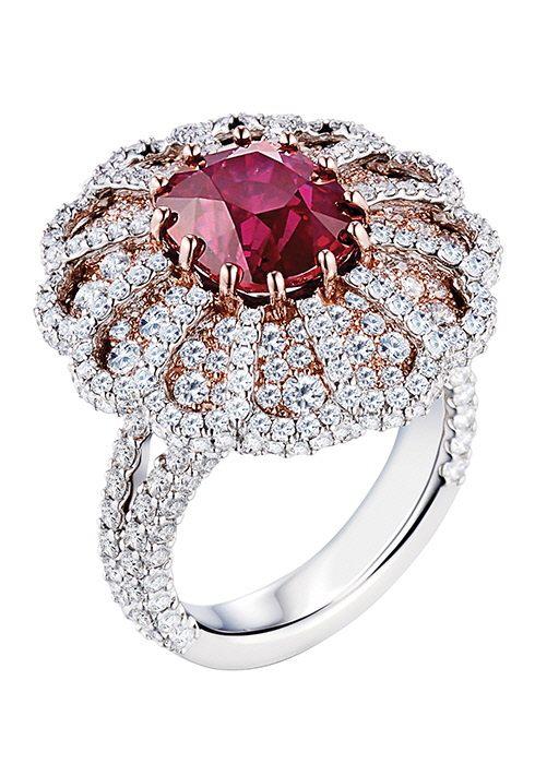 1 중세 건축물 바실리카 팔라디아나의 균형 잡힌 대칭미와 조형미를 살린 바실리카 팔라디아나 링. 5.34캐럿 루비에 18K 핑크 골드, 플래티넘으로 완성했다. 2 15세기 이탈리아 명문가의 웅장한 궁전을 재현한 팔라초 티에네에서 영감을 받아 완성한 팔라초 티에네 링. 11.94캐럿 탄자나이트와 18K 화이트 골드, 플래티넘을 매치했다. 3 16세기에 건축한 세계 최초의 실내 극장 테아트로 올림피코를 모티브로 한 테아트로 올림피코 링. 18K 옐로 골드에 1.08캐럿 옐로 다이아몬드를 세팅해 화려함을 극대화했다.