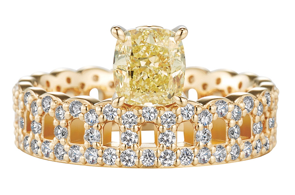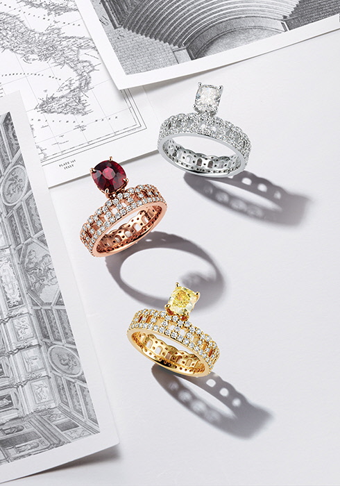 로맨틱 가든은 주얼리 애호가들이 좋아할 만한 유색 보석의 세계를 담았다. 마치 정원에 피어난 꽃을 손 위에 옮긴 듯한데, 화려한 네오로맨티시즘 디자인을 주얼리로 표현해 눈이 즐겁다. 마지막으로 이번 헤리티지 컬렉션의 하이라이트인 팔라디오. 오랜 역사를 지닌 이탈리아의 유서 깊은 주얼리 도시 비첸차를 여행하며 받은 영감에서 시작되었다.