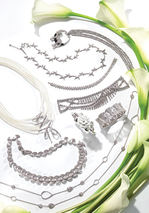 반짝이는 별의 외곽 형태를 독특하게 재해석했다. 5천4백만원대. 티파니 빅토리아 얼터네이팅 브레이슬릿 꽃잎을 이루는 마키즈 컷 다이아몬드를 플래티넘에 섬세하게 세팅한 컬렉션 6천5백만원대.