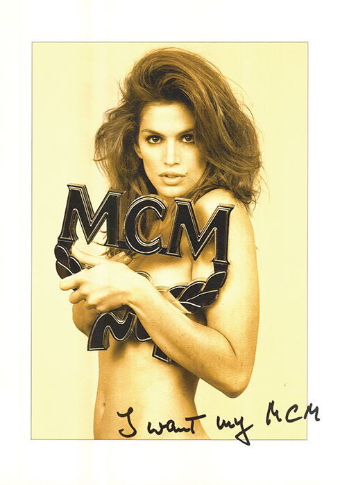 2023 A/W 시즌에는 과거의 헤리티지를 기념하는 의미를 담았다. 예전부터 MCM을 사랑하는 대표 셀러브리티 중 하나였던 전설적인 슈퍼모델 신디 크로포드(Cindy Crawford)와 다시 조우하는 것으로 과거를 돌아보았다. 그녀는 모델로 명성을 떨칠 때 MCM을 착용한 모습이 여러 곳에서 노출되면서 MCM의 화보 및 광고 촬영을 진행한 적이 있으며, 당대 최고의 브랜드와 모델의 만남은 큰 화제를 불러일으켰다. 특히 그녀의 예술적인 몸매가 드러난 화보는 센세이션을 일으키기도 했다. MCM이 그녀와 다시 만난 것만으로도 놀라운데, 콘텐츠 제작에 패션 포토그래퍼 거장 유르겐 텔러(Juergen Teller)가 참여한다는 사실 또한 화제를 모았다. 거장의 렌즈로 담아낸 MCM과 신디 크로포드의 상징적 코드와 시그너처 스타일이 기대되는 이유다.