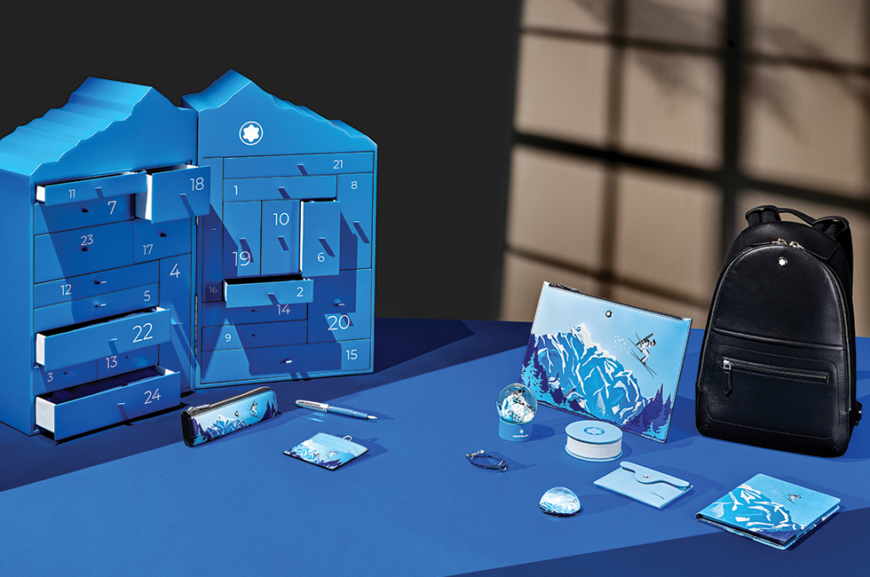 몽블랑산에서 영감받아 디자인되었으며 전 세계 오직 1백 개 한정이라 더욱 특별하다. 박스를 여는 쪽 반대편 외관에는 몽블랑 홀리데이 캡슐 컬렉션의 디자인을 더해 홀리데이 느낌을 가미했다. 어드벤트 캘린더 전용 여섯 가지 제품을 포함한 총 24가지 아이템이 펠트 주머니에 보관되어 있다. 해피 홀리데이 어드벤트 캘린더 7백38만원. 과거 몽블랑의 아카이브에서 영감을 받은 파우치. 산을 배경으로 몽블랑의 스키 마스코트가 몽블랑 마이스터스튁 만년필과 함께 스키를 타는 위트 있는 디자인이 특징이다. 마이스터스튁 홀리데이 캡슐 컬렉션 파우치 1백17만원. 부드러운 촉감의 레더 소재로 소지품을 바로 꺼낼 수 있는 프런트 지퍼 포켓으로 편리함을 더했다. 몽블랑의 시그너처 컬러인 제트블랙과 새로운 블루 컬러, 두 가지로 출시됐다. 마이스터스튁 셀렉션 소프트 백팩 1백71만원. 모두 몽블랑. 문의 1877-5408