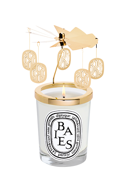 황금색 오벌 형태 장식이 캔들의 열기에 의해 빙글빙글 돌면서 홀리데이 분위기를 연출하는 까루셀 & 캔들 베이 세트 190g 18만2천원 딥티크. 02-3446-7479