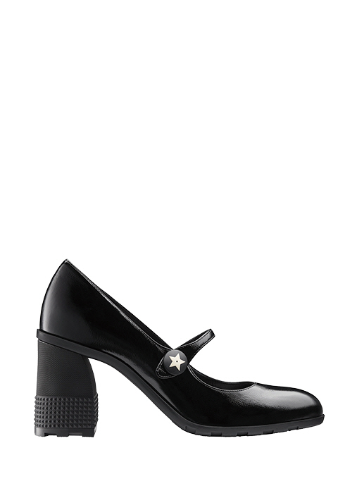 그래픽적인 디테일의 7.5cm 러버 블록 힐이 우아하면서도 캐주얼한 무드를 선사하는 블랙 유광 송아지가죽 소재의 D-DOLL 펌프스 가격 미정 디올. 02-3480-0104