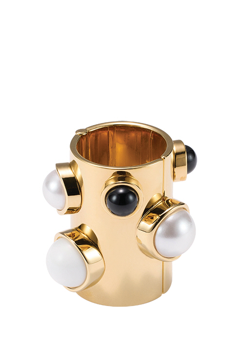 단단한 브라스 소재에 진주와 크리스털을 매치한 백 액세서리 역할을 하는 원더 링. 가방 손잡이에 부착해 여러 스타일로 연출 가능하다. 가격 미정 델보. 02-517-8322