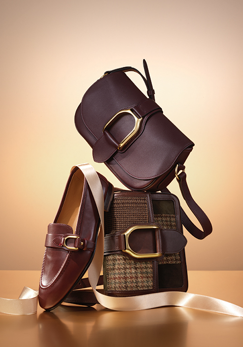 브랜드를 상징하는 스포츠인 승마 모티브에서 영받은 디자인으로 말안장에 달린 등자의 매끄러운 윤곽을 표현했다. 수공예 소가죽으로 제작해 더욱 정교하며, 특히 백 플랩 부분의 스터럽 버클이 디자인적인 포인트를 주는 카프 스킨 소재의 웰링턴 숄더백 2백20만원대, 같은 웰링턴 컬렉션의 백으로 패치워크 트위드 소재가 돋보이는 웰링턴 크로스 보디 백 2백90만원대, 클래식하고 모던한 스타일의 기본 로퍼에 브랜드 시그너처인 스터럽 버클로 포인트를 준 버니시드 카프 스킨 소재의 웰링턴 로퍼 80만원대 모두 랄프 로렌 컬렉션. 문의 02-3467-6560