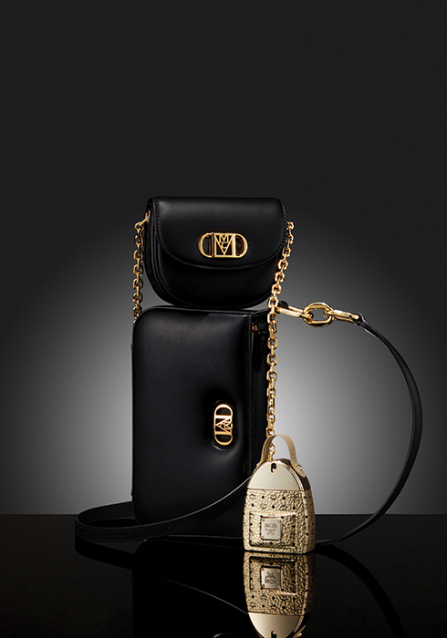 부드러운 스페니시 레더 소재에 24K 도금 메탈 로고로 마무리해 클래식하면서도 글램한 감성을 선사하는 체인 지갑. 길이 조절 가능한 체인 스트랩이 있어 숄더, 크로스 등으로 다양하게 연출 가능하다. 69만원. 부드러운 나파 양가죽에 24K 도금의 금속 로고 장식이 포인트인 호보 백 스타일의 미니 모드 트라비아 숄더백 1백25만원. 유쾌한 우디 플로럴 향의 향수로 헤리티지 금속 장식과 손잡이가 있는 베를린 골드 비세토스 스타크 백팩 형태의 보틀 케이스가 매력을 더하는 MCM 울트라 오 드 퍼퓸 50ml 10만5천원. 모두 MCM. 문의 1600-1976