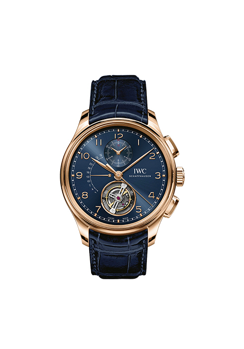 18K의 아머 골드(Armor Gold) 소재 케이스와 해양의 특성을 강조하는 블루 다이얼을 매치해 멋들어진 외관을 선보이는 포르투기저 투르비옹 레트로그레이드 크로노그래프 부티크 에디션 가격 미정 IWC. 1670-7363