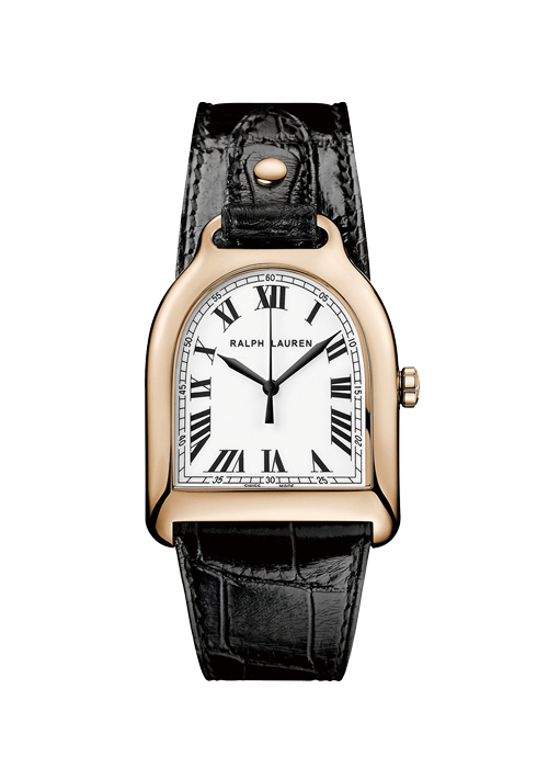 브랜드 아이덴티티를 반영하는 스터럽 모양의 18K 로즈 골드 소재의 케이스에 블랙 앨리게이터 레더 스트랩과 화이트 다이얼을 매치해 클래식한 무드를 선사하는 스몰 로즈 골드 스터럽 워치 1천2백90만원대 랄프 로렌 워치 & 파인 주얼리. 02-3467-6560