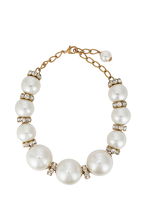 레진 소재의 볼 펜던트 사이사이에 라인 스톤 디테일의 론델 링을 넣어 화려하게 완성한 쇼트 네크리스 2백55만원 돌체앤가바나. 02-3442-6888