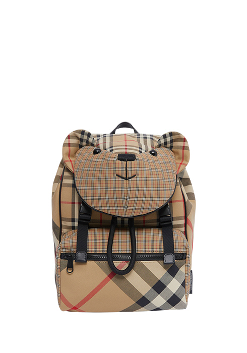 베어 모티브에 시그너처 체크를 더한 면 소재의 백팩 1백22만원 버버리. 080-700-8800