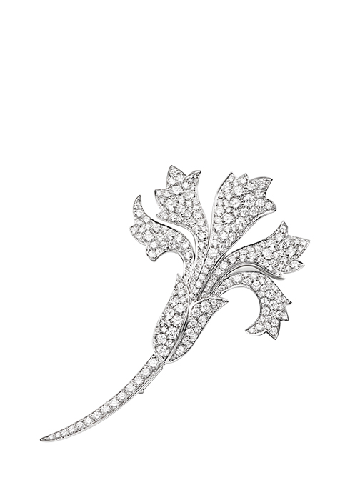아름다운 카네이션을 표현한 화이트 골드 소재에 2백24개의 브릴리언트 컷 다이아몬드 3.34캐럿을 세팅해 화려한 꽃을 표현한 왜이에 브로치 4천만원대 쇼메. 02-3442-3359