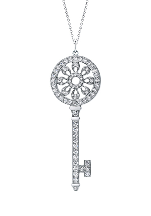 밝은 미래를 향한 긍정적인 의미를 담고 있어 꾸준한 사랑을 받는 브랜드의 아이코닉한 키 컬렉션의 펜던트로 플래티넘 소재에 다이아몬드를 세팅했다. 가격 미정 티파니. 02-6250-8620