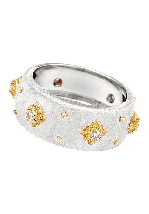 화이트 골드 밴드에 옐로 골드와 라운드 브릴리언트 컷 다이아몬드로 장식한 마크리 이터넬레 링 7백만원대 부첼라티 02-3440-5613