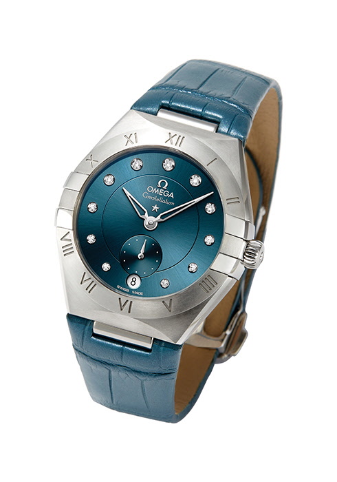 케이스 지름 34mm에 다이아몬드 아워 마커가 돋보이는 컨스텔레이션 코-액시얼 마스터 크로노미터 스몰 세컨즈 9백만원대 오메가 02-3467-8632