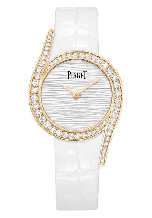 18K 핑크 골드에 61개 다이아몬드를 세팅한 베젤을 더한 라임라이트 갈라 인그레이빙 머더오브펄 3천2백만원대 피아제 1688-1874