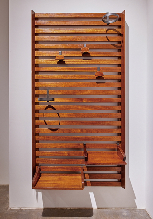 이번 전시의 하이라이트는 실용주의 디자인의 대가 장 프루베를 상징하는 작품 중 하나인 조립식 주택 ‘6X6 Demountable House(1944~1945년으로 추정)’이다. 레지스탕스로 활약하고 자신의 정신적 고향인 프랑스 낭시(Nancy)의 시장직을 잠시 맡기도 했던 그가 제2차 세계대전 이후 집 잃은 유랑민들을 위해 설계한 이 목가적인 주택은 당시 여러 사이즈로 4백 채 정도 지어졌는데(대다수가 망가졌다), 저비용에 조립, 해체가 용이해 오늘날에도 ‘유목 건축’의 연구 자료로 활용될 만큼 가치 있는 작품이다. 지하에 자리한 전시장에서 나무 벽 틈으로 스며든 빛이 만들어내는 잔잔한 무늬가 은근한 울림을 주는 이 집 안팎으로는 장 프루베의 자녀 세대가 소유했던 책상(‘Cite’)을 비롯해 ‘프루베표’ 책상, 의자, 램프 등 경매에서나 볼 법한 품목들이 존재감을 뽐낸다. 이 밖에도 페리앙이 스테프 시몽 갤러리와 아틀리에 장 프루베와 손잡고 만든 수작으로 여러 색조의 배합이 시선을 사로잡는 1950년대산 책꽂이 ‘뉘아주(Nuage)’, 르 코르뷔지에와의 협업으로 탄생한 코트 행어(‘Porte-manteau’, 1955년으로 추정), 피에느 잔느레가 인도 찬디가르 프로젝트를 하면서 지역의 티크(teak) 목재 등을 반영해 만든 의자(‘Early Edition Office Chair’)와 책장 등 빈티지 가구 애호가라면 환호할 만한 명품 가구를 실물로 볼 수 있다(전시품은 대부분 구매 가능). 또 1층에 자리한 카페를 낀 공간에서는 전시에 포함되지 않은 다른 작품들도 관람할 수 있다. 전시는 5월 11일부터 6월 11일까지. Gallery L.993(강남구 선릉로153길 22 헨리 베글린 로데오 플래그십 스토어 지하 1층). 사전 예약 필수(네이버 예약창과 전화). 문의 02-511-1993