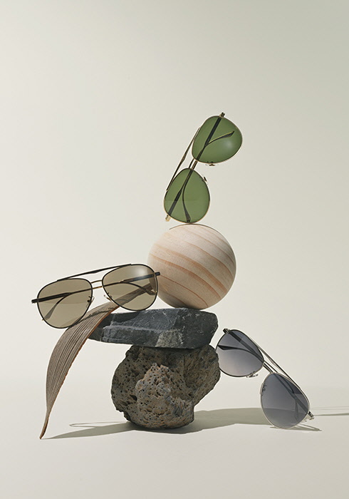 (위부터) 골드 도금 처리한 팔라듐 소재의 더블 브리지 프레임과 템플, 자이스 그린 렌즈가 어우러진 클래식한 에이비에이터 스타일의 남성용 선글라스(LG0005H5930N), 프레임과 템플 일부에 매트 블랙 컬러를 입혀 모던함을 강조한 클래식 라인 에이비에이터형 선글라스(LG0005H5902L), 실버 미러를 가미한 스모크 렌즈가 돋보이는 샤이니 팔라듐 소재의 에이비에이터형 남성용 선글라스(LG0005H5916C) 모두 59만원 론진.