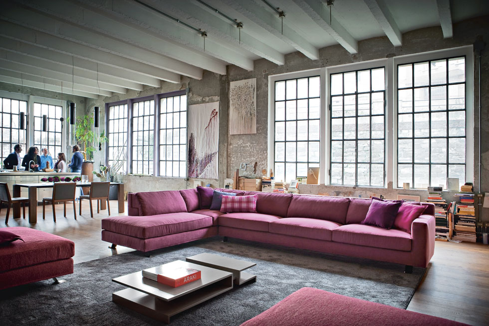 1 진달래를 연상케 하는 ‘디보 소파(Divo Sofa)’. 노바모빌리 소파들은 인체의 실루엣을 커다란 쿠션으로 받쳐주는 동시에 등받이 조절도 가능하게 설계한다. 가죽, 패브릭 등 커버 소재는 물론 다리도 나무, 메탈 등 재질을 선택할 수 있으며 커버를 벗길 수도 있어 실용적이다.