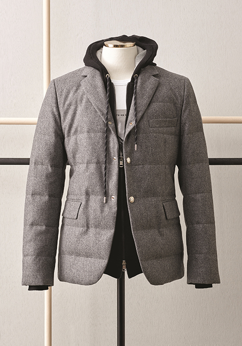 패딩이라고 캐주얼한 스타일만 있는 건 아니다. 패딩도 충분히 젠틀하게 연출할 수 있으니 주목할 것. 프린트 화이트 티셔츠 36만원, 니트 후드 집업 1백37만원, 차분한 그레이 톤의 구스다운 울 재킷 2백40만원 모두 몽클레르. 문의 02-514-0900 |