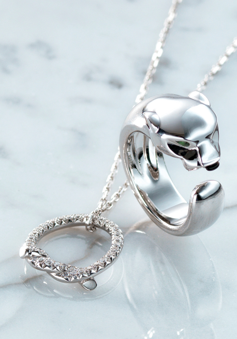 팬더 모티브 링 7백80만원대, 럭키 앙트라쎄 펜던트 네크리스 6백10만원대.