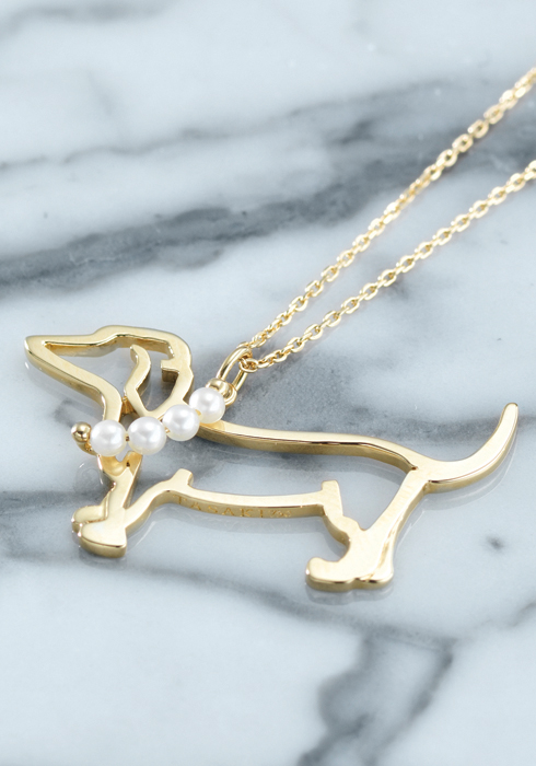 홀리데이 컬렉션으로 귀여운 동물에 진주 네크리스를 매치한 사랑스러운 펜던트. 양과 고양이, 강아지 등 다양한 동물 모티브 중 선택할 수 있다. 펜던트 60만원대, 쇼트 체인 30만원대.