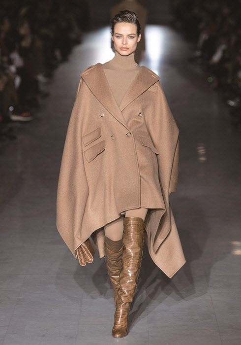 장인 정신을 바탕으로 지속적인 소재 개발과 실루엣 연구를 통해 이탈리아를 대표하는 브랜드라는 명성을 이어가고 있는 막스마라. 창립자 아킬레 마라모티가 첫 컬렉션으로 선보인 캐멀 코트와 선명한 레드 수트는 고급스러운 디테일과 세련된 감성으로 당시 의사 혹은 변호사의 아내와 같은 새로운 중산층 여성들의 마음을 사로잡기에 충분했다. 이후 코트와 수트는 브랜드의 상징적인 아이템으로 자리매김했고, 마라모티는 처음으로 미국식 대량생산 방식을 이탈리아 패션업계에 도입해 여성의 여러 체형을 고려한 기성복 치수를 최초로 체계화했다. 절제된 스타일로 선풍적인 인기를 끈 막스마라는 “어떻게 다양한 소비자를 유입할 것인가?”에 대한 물음에서 시작해 1965년, 당시 자유분방한 유스 컬처에서 영감을 받은 막스마라 팝 컬렉션을 선보였다. 새로운 라이프스타일을 제시하며 이를 위한 젊고 캐주얼한 스타일에 대한 요구를 파악한 막스마라는 1969년 막스마라 팝 컬렉션을 재정비해 스포트막스 라인을 론칭했다. 정교한 테일러링과 스포티즘 요소를 결합해 직장부터 일상생활에 이르는 다채로운 상황과 장소에서 입고 즐길 수 있도록 선택의 폭을 넓힌 것. 마라모티는 1971년 잡지 <아리아나(Arianna)>와 나눈 인터뷰에서 “패션과 보그의 차이점에 대해 정의하자면, 패션은 자신만의 스타일을 추구하는 데 반해 보그는 유행을 지향하는 단어다. 패션이 막스마라라면 보그는 스포트막스다”라며 스타일에 관한 자신의 철학을 전했다. 막스마라는 1970년대 중반 칼 라거펠트(Karl Lagerfeld), 루치아노 소프라니(Luciano Soprani), 나니 스트라다(Nanni Strada) 등 유명 디자이너들과 협업해 신선한 디자인을 주기적으로 선보이며 클래식에 대한 열린 태도를 유지했다. 이와 같은 맥락으로 1981년 디자이너 앤 마리 베레타(Anne Marie Beretta)가 클래식 트렌치코트에서 영감을 받아 제작한 울 캐시미어 코트는 막스마라 역사에서 빼놓을 수 없는 아이템. 기모노 소매와 허리를 조이는 벨트가 없는 일직선의 투박한 디자인이 특징으로, 출시 직후 폭발적 반응을 얻었다. 생산 당시 부여된 상품 번호를 차용해 101801이란 이름을 붙인 이 코트는 현재까지 막스마라의 시그너처 아이템으로 자리매김했다. 지난 2월 밀라노 패션 위크에서 선보인 2019 F/W 컬렉션도 주목할 만하다. 캐시미어와 개버딘 등 부드러우면서도 견고한 소재로 제작한 코트와 재킷, 팬츠 수트를 중심으로 실루엣은 정갈하고 편안한 느낌을 유지하되 슬릿 디테일이나 미니스커트로 다리 라인을 강조해 특유의 포멀하고 매니시한 느낌을 중화했다. 팔레트는 브랜드의 시그너처 컬러로 통용되는 캐멀과 베이지 등 자연스럽고 익숙한 어스 컬러를 중심으로 옐로나 블루같이 경쾌한 컬러로 포인트를 주었다. 하트 모티브나 숫자같이 기하학적인 요소를 적극 차용한 프린트로 시각적인 효과를 더한 룩과 허벅지 높이의 사이하이 부츠, 오버사이즈 머플러 등 다양한 아이템으로 컬렉션을 보다 풍성하게 채웠다.