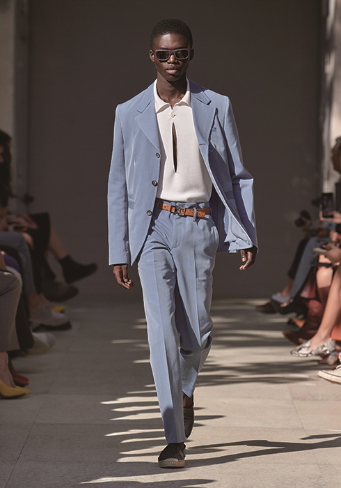 최근 살바토레 페라가모 패밀리의 지원으로 피렌체에서 재건축된 암마나티(Ammannati)의 16세기 넵튠 분수에서 영감을 받은 새로운 프린트는 짧은 백리스 오버올, 스카프 모자, 편안한 롱 실크 데보레 드레스에 오버사이즈 튤립 스커트는 물론, 남성 셔츠와 스윔웨어에도 적용되어 눈길을 끌었다. 과감하면서도 고급스러운 서머 스타일이 완성된 느낌이다. 버블 스커트, 꽉 묶은 앵클 트라우저, 백을 커팅한 테일러드 코트, 통 넓은 오버올은 모두 로맨틱한 1980년대 이탈리아 스타일의 재해석으로, 살바토레 페라가모 고유의 럭셔리한 편안함이 그대로 느껴진다. 무라노(Murano) 유리공예의 전통을 반영하기 위해 고안된 컬러 표현 역시 이탤리언의 전통에 대한 자부심을 느끼게 하는 부분. 트렌치코트와 오버올은 등을 커팅해 모던함과 섹시함을 강조했으며, 앞부분에 가죽을 매치한 트라우저와 뒷부분을 면으로 만든 셔츠 등은 강렬한 소재 대비의 아방가르드한 매력으로 눈길을 끌었다. 피렌체의 언덕에서 만든 라셸 니트 드레스와 비단 크레이프의 프린지 리본 스트라이프 톱, 손으로 짠 탱크 드레스도 예술적인 아름다움과 완성도로 눈길을 끌었다. 살바토레 페라가모라는 전통적인 빅 하우스를 이끌고 있는 폴 앤드류의 행보는 시즌이 거듭될수록 기대감을 불러일으킨다. 폴 앤드류 특유의 선하면서도 우아하고, 은은하면서도 강인한 느낌이 컬렉션에 그대로 묻어나는 듯하다. “고급스럽지만 결코 무겁지 않은 옷과 신발, 가방은 계절이 지난 이후에도 소중히 간직될 것입니다. 이 아이템들은 태양, 소금, 모래와 바다가 함께하는, 길고 나른한 하루를 위해 탄생했습니다. 저는 이 아이템들이 사람들에게 우리 어머니의 벽난로 위에 있는 사진들처럼 아름다운 기억이 되어가길 바랍니다.” 추억, 여유로움, 순진무구함, 소중함 등을 담고 있는 살바토레 페라가모 2020 S/S 컬렉션. 옷장 속에 또 하나의 추억이 고이 간직될 듯하다. #FerragamoSS20