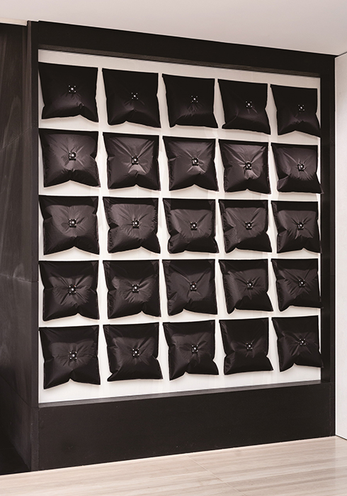 플래그쉽 스토어는 샤넬을 상징하는 색에서 시작한다. 용암석과 글라스 소재로 이루어진 외관은 전면이 샤넬의 블랙이다. 밖에서 볼 때는 불투명하지만 자연광이 검은색 외부 유리를 통해 들어와 낮의 햇살이 매장 내부를 가득 채운다. 외관의 검은 용암석이 내부로 자연스럽게 입구까지 연결되다 점차 회색 석재로 변하면서 외부에서 내부로 동선이 이어진다. 부티크 바닥 전체에 사용한 단단하고 묵직한 석조 소재는 견고한 샤넬 왕국을 떠올리게 한다. 부티크 안은 모던하고 위엄 있는 외관과 다르게 우아하고 친밀감이 넘친다. 가브리엘 샤넬의 파리 아파트를 서울에 옮겨 놓은 듯, 정확히 가브리엘 샤넬이 추구하는 것들로 채워졌다. 검은색, 흰색, 엷고 부드러운 아이보리. 이 간결하고 세련된 색으로 이루어진 공간 속에서 제품은 더욱 돋보이고 가브리엘 샤넬이 고른 듯 ‘샤넬다운’ 현대 미술 작품들이 미적 감각을 드러낸다. 실제로 피터 마리노가 직접 선별한 현대 예술가의 작품 31점은 건물과 마치 한 몸인 것처럼 적재 적소에 자리잡았다. 매장으로 들어서면 청담 부티크를 위해 특별히 의뢰한 작품, 파블로 레이노소(Pablo Reinoso)의 ‘숨쉬는 단색의 벽’ 이 고객을 맞이한다. 팬 모터를 단 검정색 패브릭 쿠션 25개를 일렬로 배열한 작품은 팬의 움직임에 따라 숨을 쉬듯 부풀었다 가라앉기를 반복한다. 이는 추상 색면화처럼 단순하지만 거대함으로 보는 이를 압도하는 오라를 지녔다. 공간 건너편에는 금박 처리한 진주 비즈를 목재 위에 설치한 파올라 피비(Paola Pivi)의 작품 ‘무제’가 걸려있다. 서울 부티크를 위해 특별히 제작한 이 두 작품은 대담한 3D 형태로 작품을 둘러싼 패션 제품들과 어울리도록 재료와 질감을 강조했다. 이를 통해 피터 마리노가 뛰어난 소재에 집중해온 샤넬의 정신을 어떻게 구현했는지 알 수 있다. 1층뿐 아니라 부티크 모든 층에서 코너를 돌 때마다 생각지도 못한 예술 작품을 마주한다. 그 어느 도시와 다르게 서울만의 정체정을 부각시키는 유명한 한국 예술가인 이불, 강익준, 이우환 등의 작품들이 바로 그것이다. 이우환의 대표작인 라인 시리즈의 선형 목탄 작품을 포함하여 한국 예술가들의 미의 세계는 샤넬의 정신과 강력한 조화를 이루어 서울 속 샤넬을 완성한다.