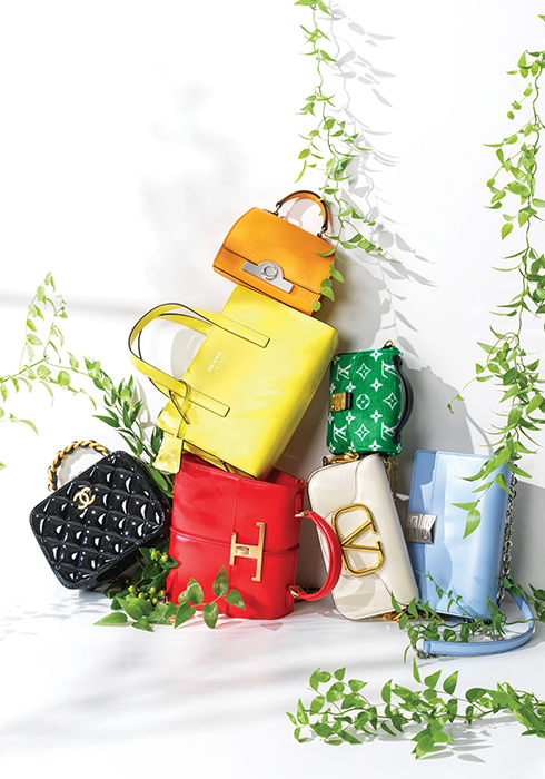 상징적인 모노그램 패턴을 적용한 그린 자카드 벨벳 소재 마이크로 메티스 백. 탈착 가능한 체인 스트랩이 있어 토트백 혹은 크로스 보디 백으로 다채롭게 연출할 수 있다. 2백43만원. 문의 02-3432-1854.