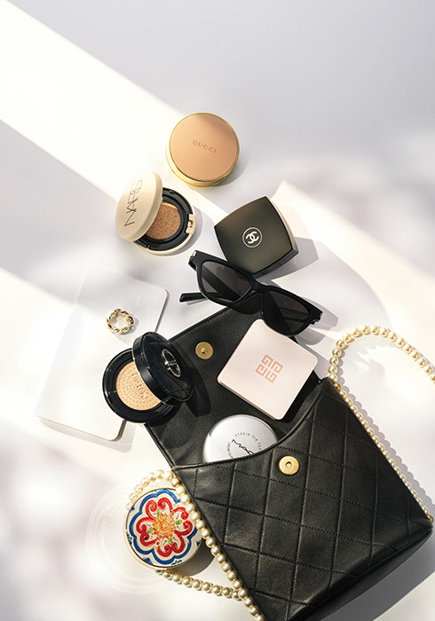 샤넬 뷰티 울트라 르 뗑 쿠션 얇고 가벼운 텍스처가 피부에 닿자마자 자연스럽게 스며들어 내추럴한 커버가 가능한 쿠션 파운데이션. 여러 번 덧발라도 뭉치거나 두꺼워지지 않고 오히려 피붓결이 한층 더 매끄러워지며 피부 톤은 균일하게 표현된다. 물기와 땀에 강한 워터 & 스웨트프루프 효과를 담았다. 9g 8만4천원. 문의 080-332-2700, www.chanel.com