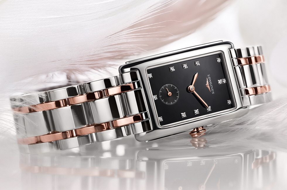 론진은 우아한 매력이 돋보이는 시계 ‘돌체 비타’의 로즈 골드 & 스틸 소재 버전을 새롭게 선보인다.