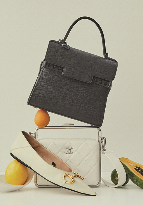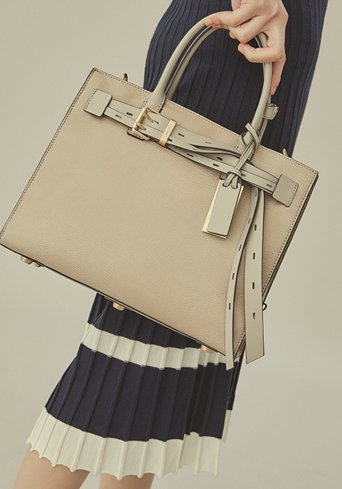 <부부의 세계> 1회에서 김희애가 처음 등장하는 장면에 착용해 강렬한 존재감을 자랑하기도 한 다비 백. 이탈리아 소가죽으로 완성한 견고한 실루엣과 부드러운 컬러감이 특징이다. 플랩을 아래로 밀어 록 장식을 여는 형식으로 메탈 루프 장식과 3겹으로 분리되는 보디라인이 포인트. 후면에 오픈 포켓 디테일을 가미해 실용성을 강조했다. 49만8천원 조이그라이슨.