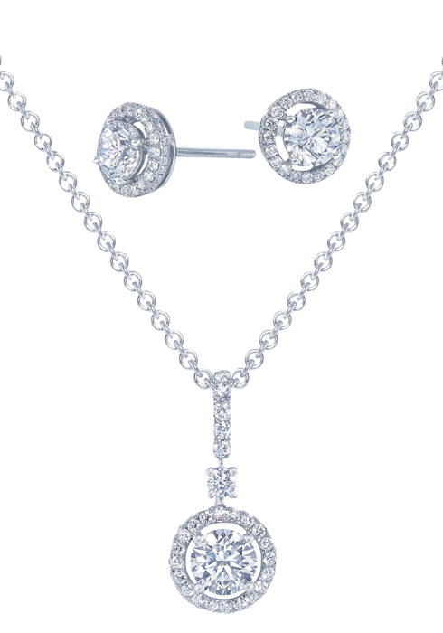 3 러브 컬렉션의 다이아몬드 펜던트 네크리스와 다이아몬드 스터드 이어링.