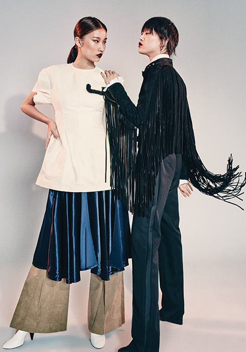 (오른쪽) 패치워크 디테일 니트 톱, 프린지 디테일 스커트 모두 가격 미정 페이.