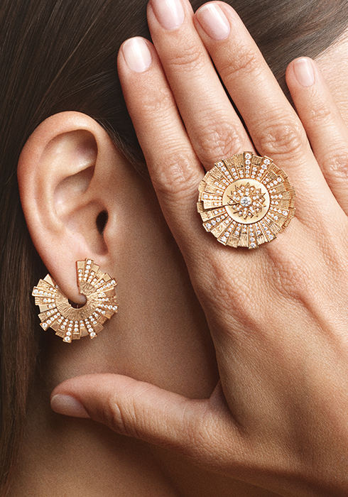 메종은 수십 년 동안 태양을 가장 중요한 모티브 중 하나이자 영감의 원천으로 여겼다. 그 철학을 고스란히 담은 컬렉션이 바로 선라이트. 이 컬렉션에는 최고급 소재를 사용하면서 약 60년 동안 축적한 피아제만의 정교한 디자인과 노하우를 담은 네크리스와 이어링이 포함된다. 1960년부터는 피아제 메종만의 독보적인 역량을 담은 팰리스 데코 마감 기법을 사용했는데, 기요셰 기법에서 영감을 받아 불규칙한 라인으로 만든 질감으로 골드가 천연 실크 느낌을 연상시키며 눈부신 광채를 내뿜는다. 이러한 펠리스 데코 기법은 골드 브레이슬릿에 가장 먼저 사용되었고, 이는 메종 고유의 시그너처로 자리 잡았다. 그야말로 피아제만의 유서 깊은 헤리티지를 담아냄과 동시에 현대적인 매력을 구현한 것.