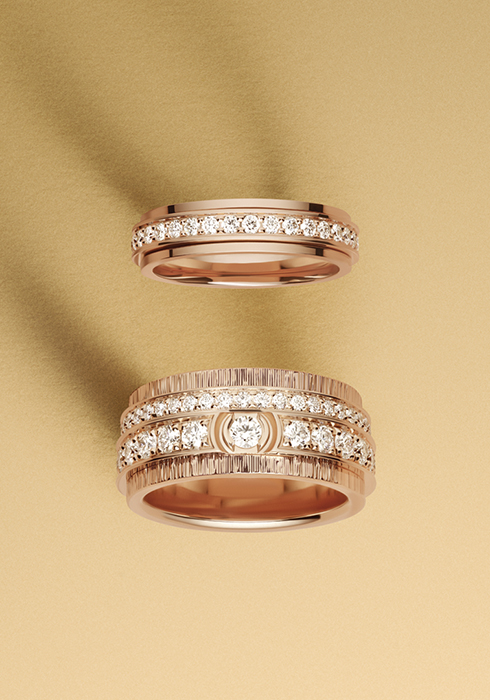 마지막으로 회전하는 모티브를 담아 유쾌함을 표현한 포제션 컬렉션을 소개한다. 그동안 주로 모던한 디자인 위주였던 피아제는 메종의 클래식함을 보여주는 동시에 세련되고 유쾌한 디자인을 선보이기 위해 포제션 컬렉션을 만들었다. 포제션 컬렉션 제품의 경우 여러 피스를 착용하거나 다양한 컬러 또는 사이즈를 믹스 매치해 나만의 개성을 표현할 수 있다. 문의 1668-1874