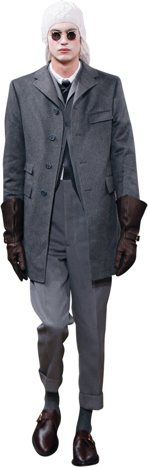 남자들 사이에도 스트리트 패션을 다루는 해외 블로그가 인기를 끌고 있다. 특히 피렌체 남성복 박람회인 피티 워모(Pitti Uomo)에 모인 스타일리시한 남자들은 톰 브라운의 그레이 톤 온 톤 수트를 유니폼처럼 입고 있다. 복숭아뼈를 드러낸 채 투박한 옥스퍼드 슈즈를 신고, 수트와 같은 소재로 맞춘 타이와 재킷 안에 카디건을 갖춰 입는 스타일링이 대표적이다. 특히 톰 브라운을 상징하는 블루, 레드, 화이트 그로그랭(grosgrain) 테이프 장식은 재킷의 소매 단추 아랫 부분이나 안감 등 시그너처 디테일로 쓰인다.