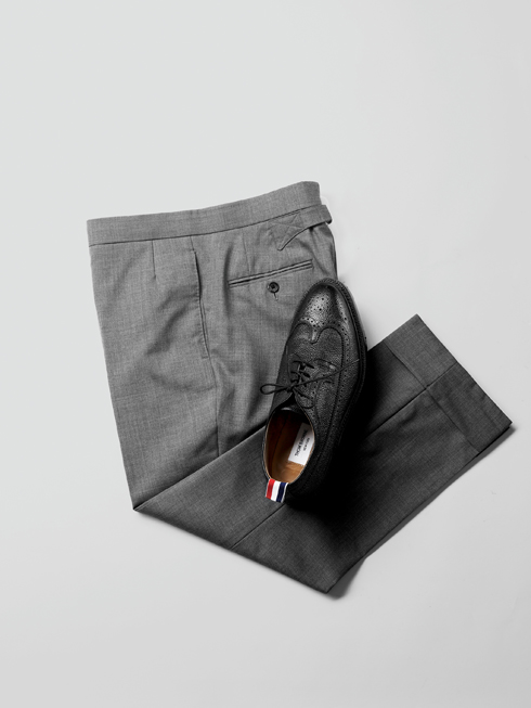 입고 재단한 듯 딱 맞는 사이즈, 좁은 라펠의 재킷, 발목이 보이도록 한 이 옷이 남자들 사이에서 가장 현대적인 수트로 각광받고 있다. 최고급 소재와 정교한 디테일, 핸드메이드를 고수하며 아메리칸 클래식을 모던하게 트위스트한 브랜드 ‘톰 브라운(Thom Browne)’ 얘기다.