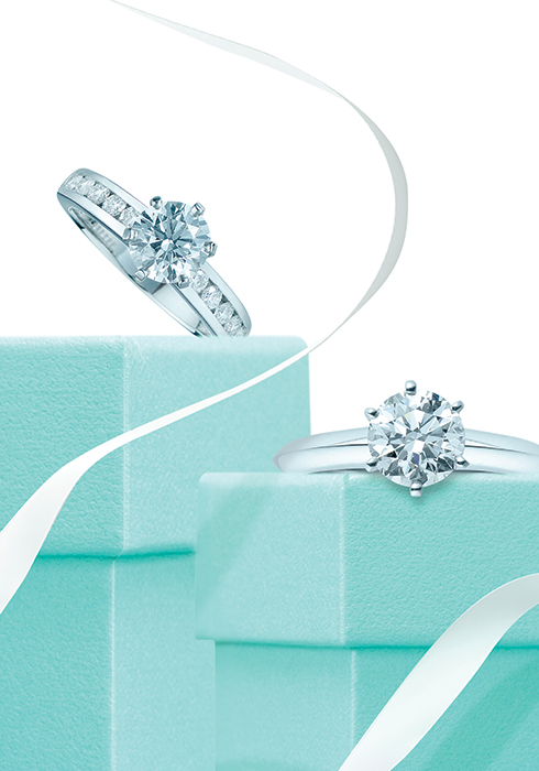 | 6prongs, Tiffany® Setting 희소가치가 있는 다이아몬드를 밴드 위로 들어 올려 완성한 상징적인 티파니 세팅 링. 1백30년 전부터 현재까지 세계에서 가장 사랑받는 웨딩 링으로 반지 중의 반지, 최상의 광채를 자랑하는 가장 아름다운 웨딩 링의 자리를 공고히 지키고 있다. 사진 속 제품은 2캐럿 상당의 티파니 세팅 링. |