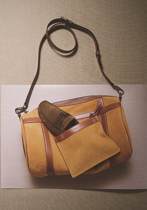 매끈한 레더 트리밍으로 포인트를 준 스웨이드 카프 스킨 소재 위켄드 백 2백42만원, 타임리스 고미노 드라이빙 슈즈 77만5천원 모두 토즈. 문의 02-3438-6008