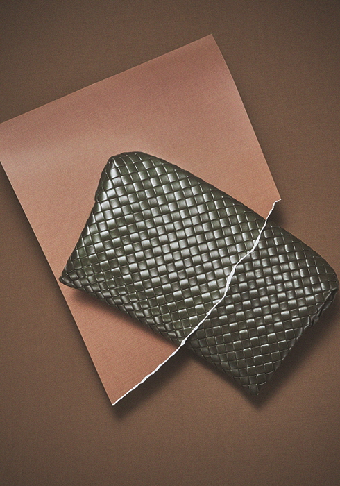 인트레치아토 기법으로 장식성을 살린 어두운 그린 계열의 나파 레더 BV 클래스프 클러치4백72만원 보테가 베네타. 문의 02-3438-7682