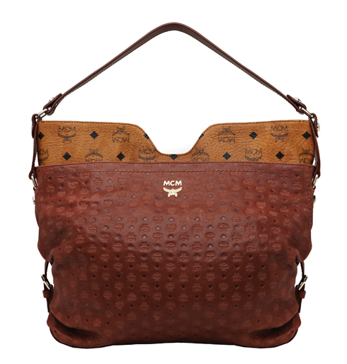 아래 왼쪽의 진한 갈색 가방이 뉴욕 컬렉션 라인이다. 나머지 MCM 고유의 비세토스 소재가 돋보이는 세 가지 가방은 꼬냑 비세토스 라인.